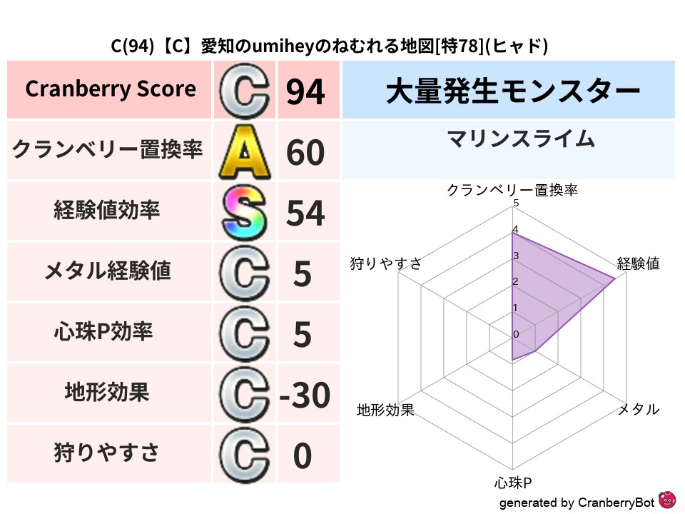 • クランベリースコア:これまで判定した地図での順位、上位100位はかなりレア✨