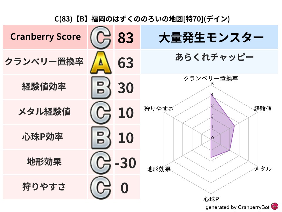 • クランベリー置換率:大量発生モンスター別の順位、最高置換率の地図は人気が高い