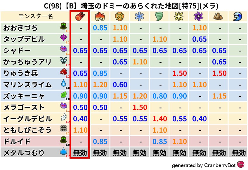 • 最高系統出現率:一番出現率の高いモンスターの系統、こころドロップ率アップの参考に!