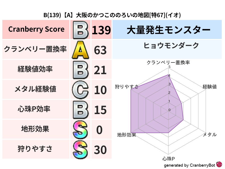 • クランベリースコア:これまで判定した地図での順位、上位100位はかなりレア✨