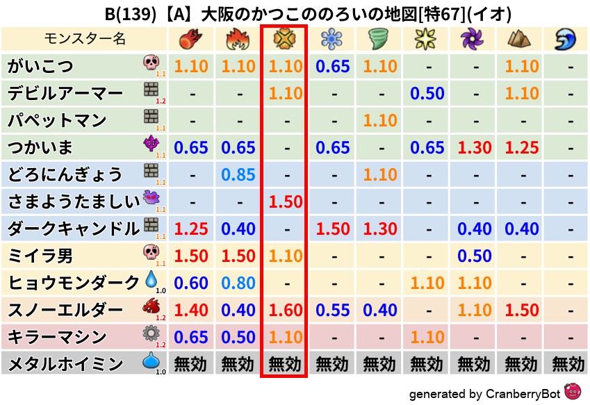 • 最高系統出現率:一番出現率の高いモンスターの系統、こころドロップ率アップの参考に!