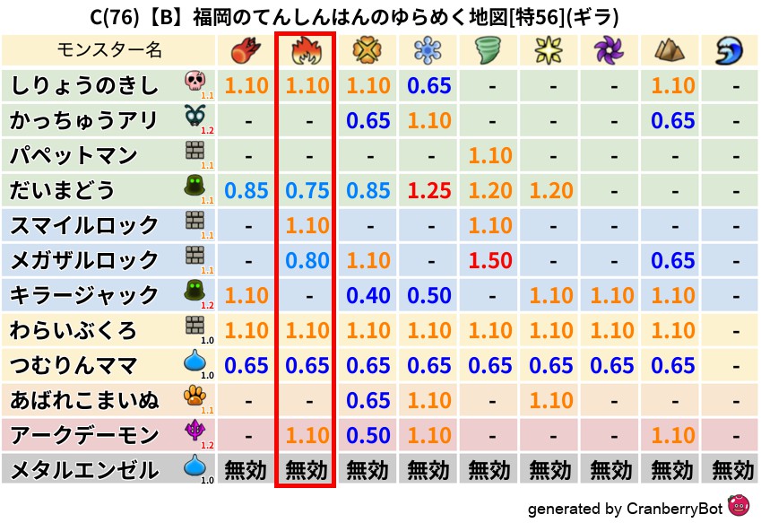 • 最高系統出現率:一番出現率の高いモンスターの系統、こころドロップ率アップの参考に!