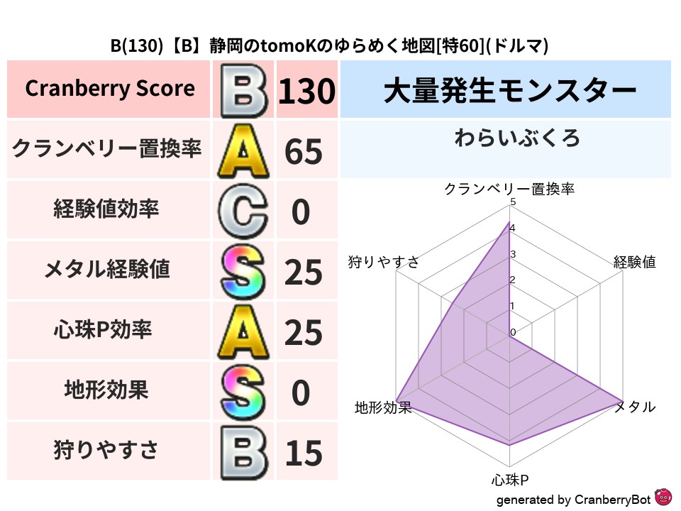 - クランベリースコア:150