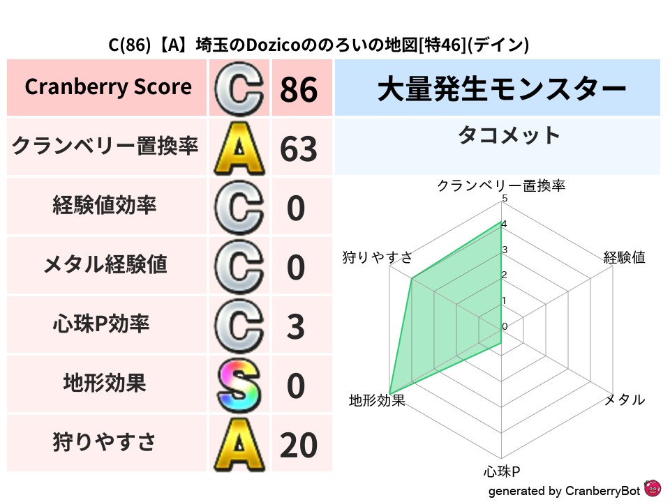 - クランベリースコア:88