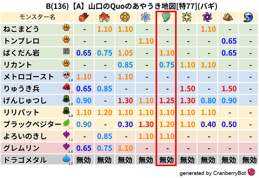 バギ(0%) - 超耐性・弱耐性なし
