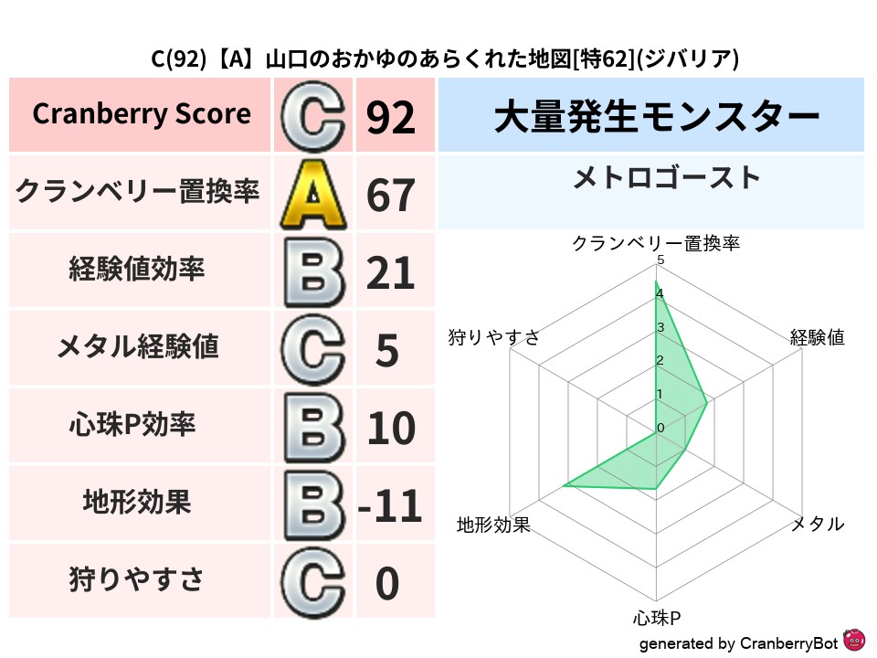 • クランベリースコア:これまで判定した地図での順位、上位100位はかなりレア✨