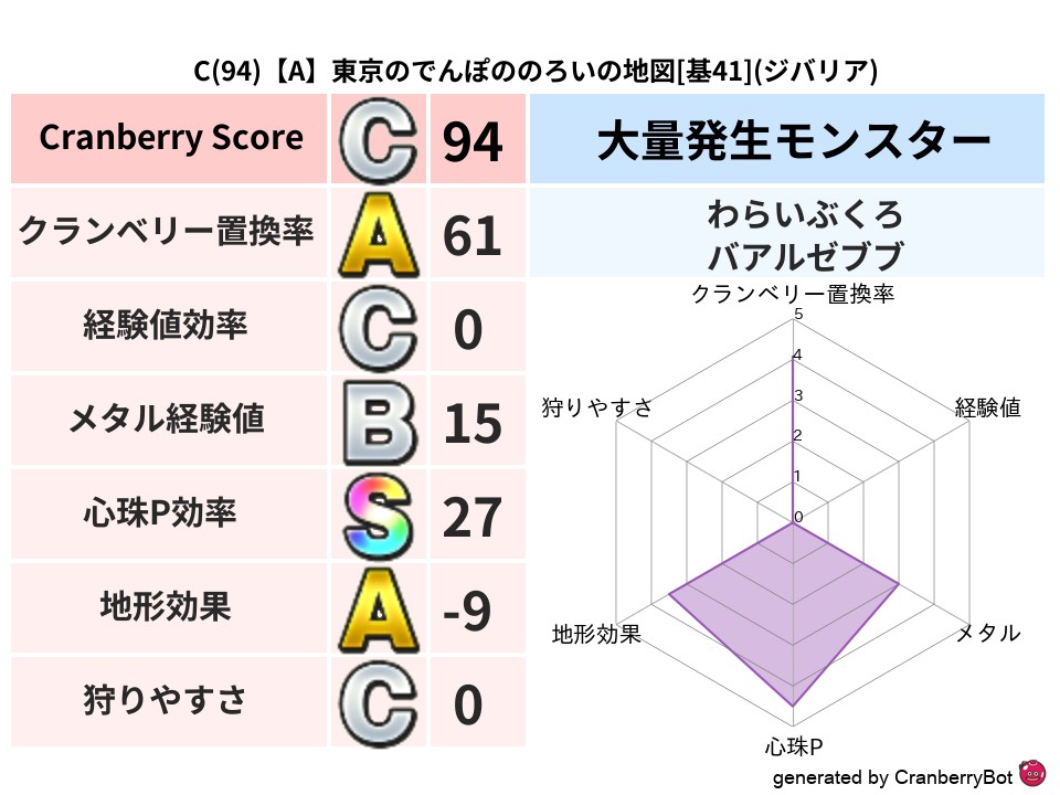 ドロップしたこころのランクをバアルゼブブと比較すると、