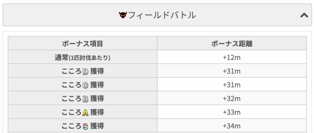 スライアスロンの「フィールドバトル」は、こころがドロップしたかどうかの割合が大きく、こころのランクによる加点は低くなっています。