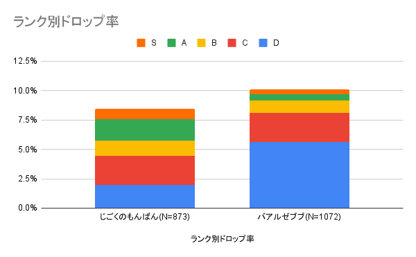 じごくのもんばんはDが約25%で、S〜Bランクが約50%と圧倒的な差が出ました。