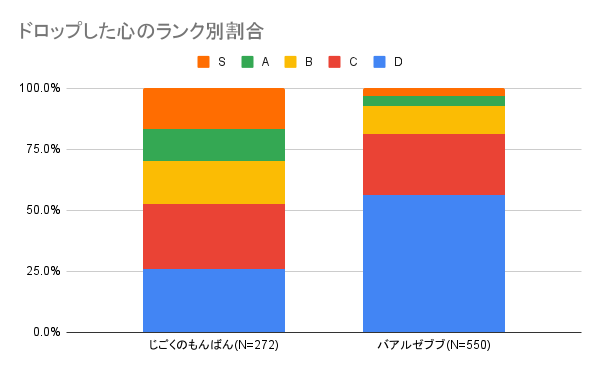 じごくのもんばんはDが約25%で、S〜Bランクが約50%と圧倒的な差が出ました。