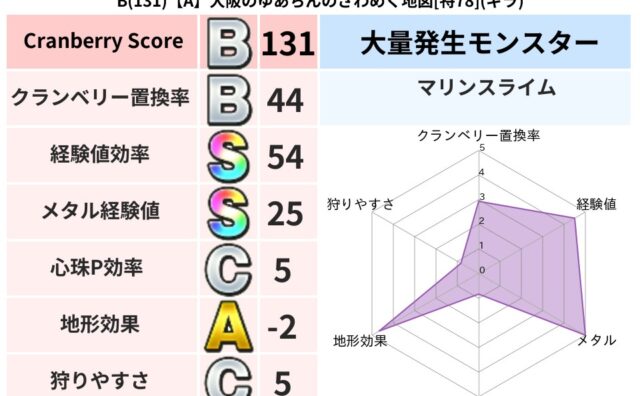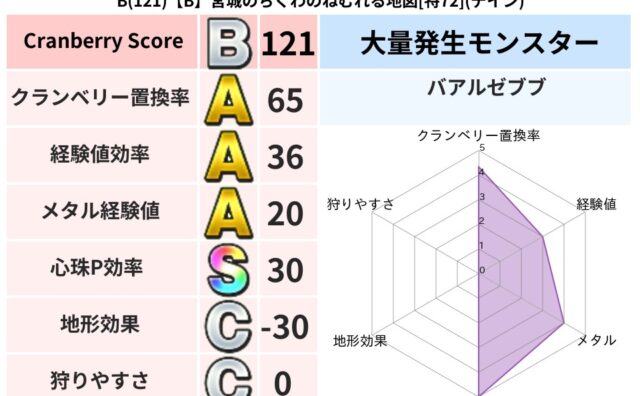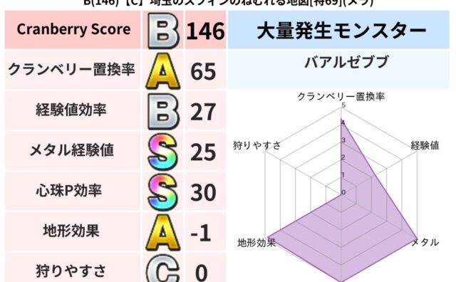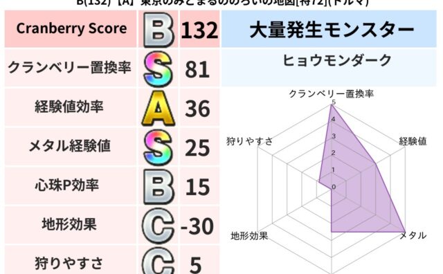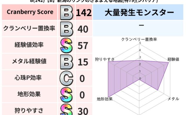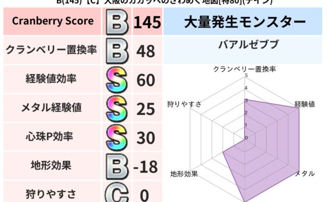 クランベリーボット判定結果の詳細クランベリースコア146クランベリー置換率51%大量発生モンスターマポレーナ,タホドラキー超耐性バギ(0%)こころ道 完全一致モンスターアイアンクック守り人(まもり道Lv5)どくろあらいゴッドハンド(守護道L...
