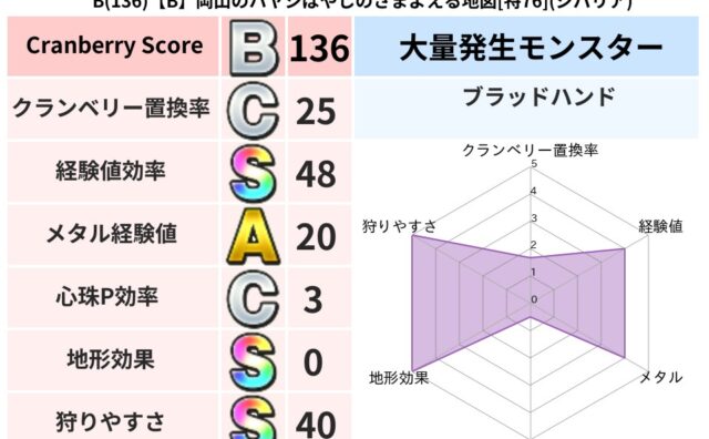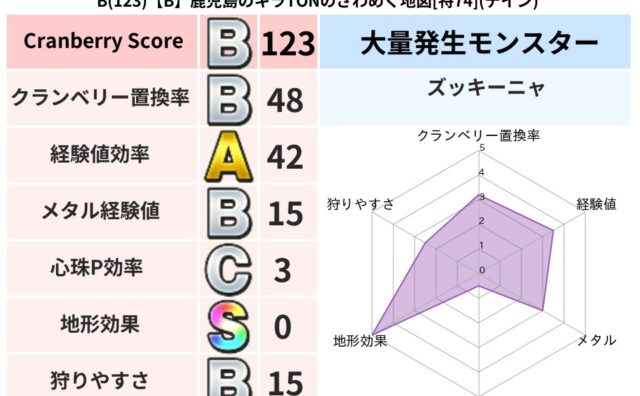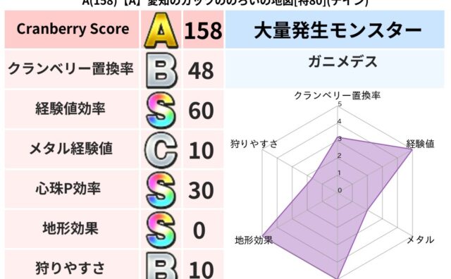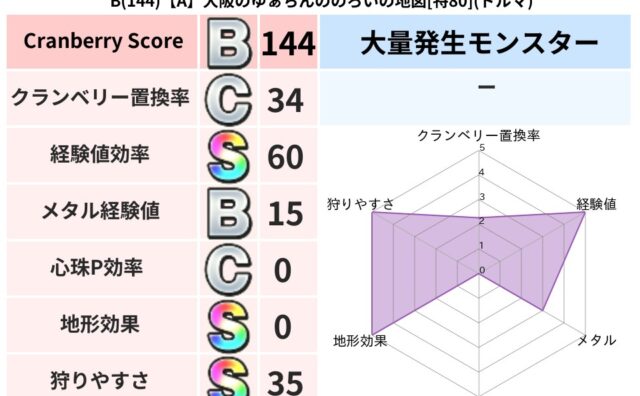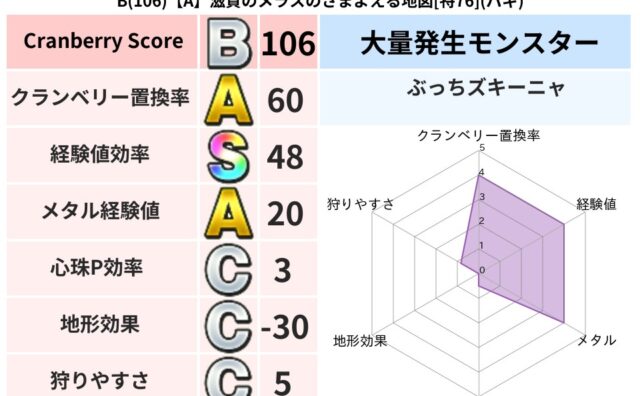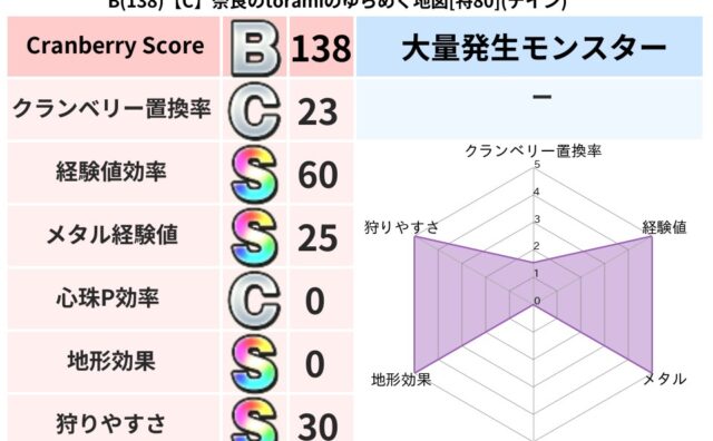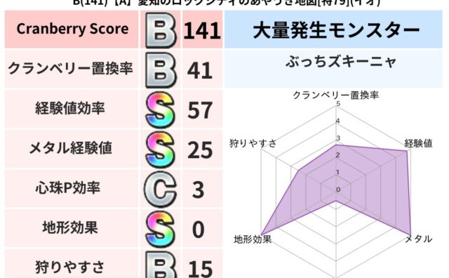 クランベリーボット判定結果の詳細クランベリースコア131クランベリー置換率44%大量発生モンスターマリンスライム超耐性ギラ(1%)超耐性・弱耐性なしドルマこころ道 完全一致モンスターフロストギズモ魔剣士(魔道Lv5)どくイモムシニンジャ(波...