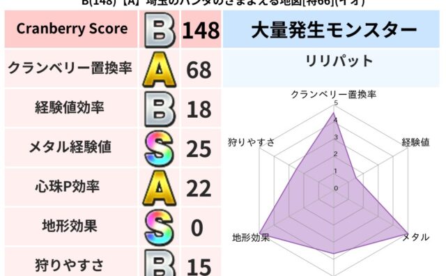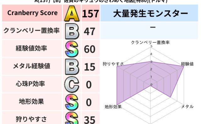 クランベリーボット判定結果の詳細クランベリースコア134クランベリー置換率19%超耐性バギ(0%)こころ道 完全一致モンスターオニオーンニンジャ(風道Lv5)スカルガルードラゴン(竜道Lv5)ひとくいばこ魔剣士(刃道Lv10)ぐんたいガニ守...