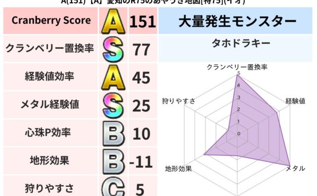 判定 スコア 地図名 レベル 属性 151【A】愛知のR75のあやうき地図特75イオ149【A】神奈川のニポポのあらくれた地図特78ギラ140【C】茨城のカインのはかなき地図特77イオ139【A】佐賀の43ズのあやうき地図特73デイン128...