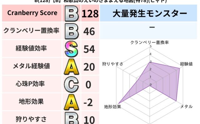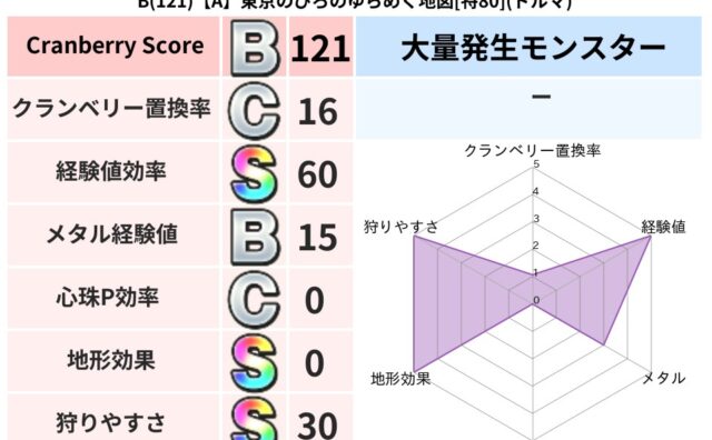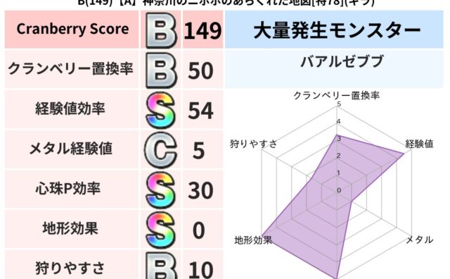 クランベリーボット判定結果の詳細クランベリースコア149クランベリー置換率50%大量発生モンスターバアルゼブブ超耐性ギラ(0%)こころ道 完全一致モンスターどくろあらいゴッドハンド(守護道Lv5)ナイトキャット守り人(まもり道Lv30)マミ...