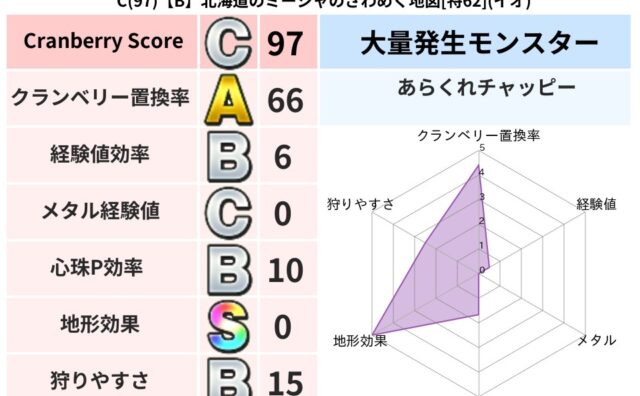 クランベリーボット判定結果の詳細クランベリースコア101クランベリー置換率61%大量発生モンスタークリスタルハンド超耐性ヒャド(78%)こころ道 完全一致モンスターみならいあくまニンジャ(風道Lv5)ギズモ天地雷鳴士(共通Lv1)かっちゅう...
