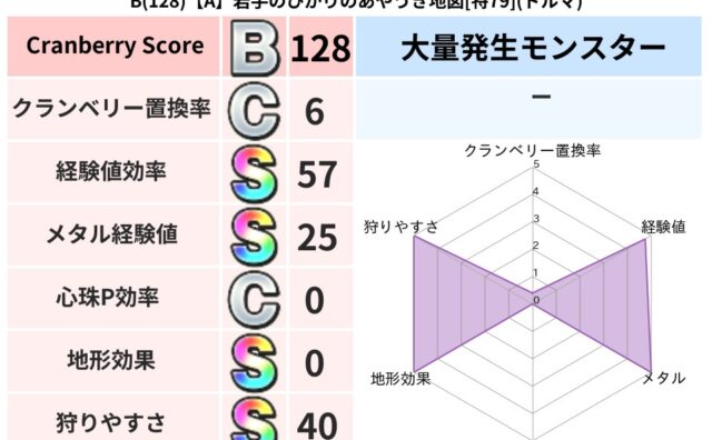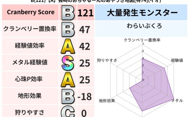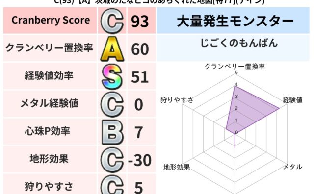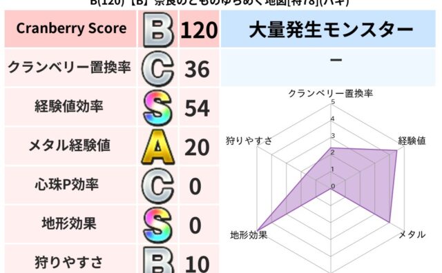クランベリーボット判定結果の詳細クランベリースコア122クランベリー置換率62%大量発生モンスターガニメデス超耐性ヒャド(57%)こころ道 完全一致モンスターねこまどうニンジャ(風道Lv5)スカルガルードラゴン(竜道Lv5)ミニデーモン大魔...
