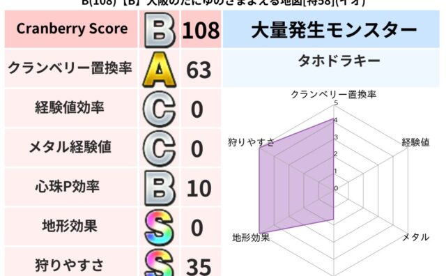 クランベリーボット判定結果の詳細クランベリースコア65クランベリー置換率68%大量発生モンスターりゅうせんし超耐性ギラ(37%)系統狩りドラゴン系41%こころ道 完全一致モンスターしのどれいゴッドハンド(守護道Lv5)大魔道士(魔力道Lv5...