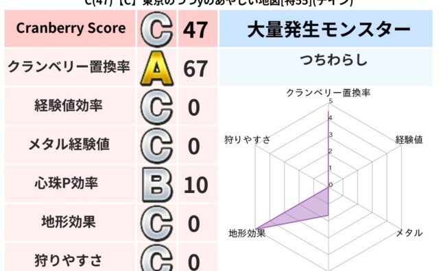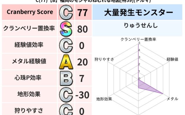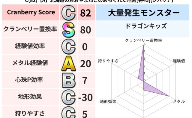 クランベリーボット判定結果の詳細クランベリースコア77クランベリー置換率80%大量発生モンスターりゅうせんし超耐性ドルマ(48%)こころ道 完全一致モンスターヒートギズモ守り人(ささえ道Lv5)かっちゅうアリ魔人(共通Lv1)たてまじん魔剣...