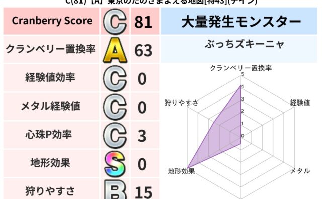 クランベリーボット判定結果の詳細クランベリースコア:89クランベリー置換率:76%大量発生モンスター:リリパットドルマ超耐性(0%)こころ道 完全一致モンスターフレイム: 守り人(ささえ道Lv5)デビルアーマー: 大神官(舞道Lv5)キース...