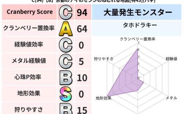 クランベリーボット判定結果の詳細クランベリースコア53クランベリー置換率63%大量発生モンスターつむりんママ超耐性バギ(51%)こころ道 完全一致モンスターキースドラゴン大魔道士(理力道Lv5)だいまどうゴッドハンド(武道Lv40)フロスト...