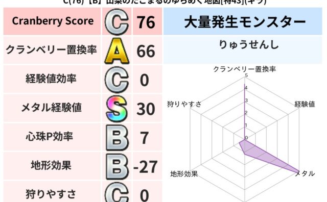 クランベリーボット判定結果の詳細クランベリースコア68クランベリー置換率61%大量発生モンスタードラゴンキッズ超耐性ヒャド(80%)こころ道 完全一致モンスターどれいへいしドラゴン(人道Lv5)ストーンマンゴッドハンド(守護道Lv5)ひとく...