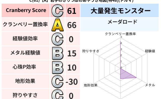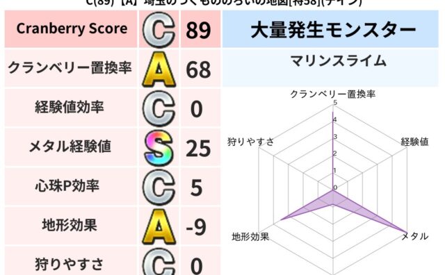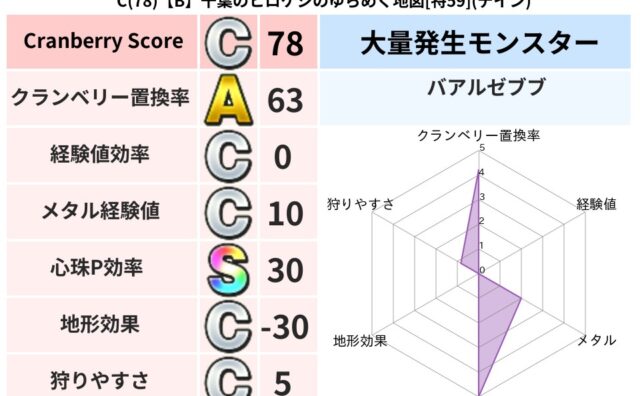 クランベリーボット判定結果の詳細クランベリースコア:151クランベリー置換率:63%大量発生モンスター:バアルゼブブメラ超耐性(0%)こころ道 完全一致モンスターヒートギズモ: 守り人(ささえ道Lv5)ばくだん岩: 大神官(舞道Lv5)スト...
