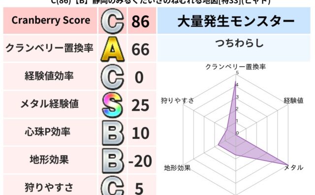 クランベリーボット判定結果の詳細クランベリースコア:82クランベリー置換率:66%大量発生モンスター:メーダロードヒャド超耐性(0%)系統狩り(41%)こころ道 完全一致モンスターブラウニー: 守り人(共通Lv1)おおさそり: ゴッドハンド...
