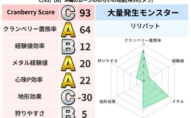クランベリーボット判定結果の詳細クランベリースコア135クランベリー置換率63%大量発生モンスタータコメット超耐性メラ(1%)こころ道 完全一致モンスターしりょうのきし大神官(舞道Lv5)だいまどうゴッドハンド(武道Lv40)じんめんじゅ大...