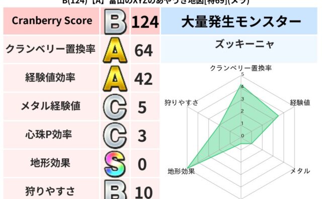 クランベリーボット判定結果の詳細クランベリースコア:109クランベリー置換率:2%メラ超耐性(0%)超耐性・弱耐性なし:バギ系統狩り(42%)こころ道 完全一致モンスターしりょうのきし: 大神官(舞道Lv5)タホドラキー: ドラゴン(人道L...