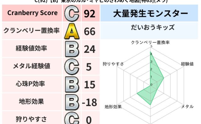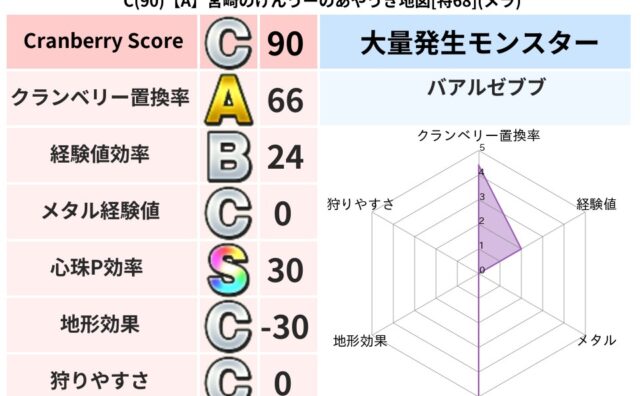 クランベリーボット判定結果の詳細クランベリースコア70クランベリー置換率63%大量発生モンスターぶっちズキーニャ超耐性メラ(6%)超耐性・弱耐性なしジバリアこころ道 完全一致モンスターみならいあくまニンジャ(風道Lv5)キースドラゴン大魔道...