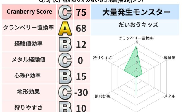 地図判定結果 C(87)【C】長野のぽこたののろいの地図[特26](メラ) クランベリーボット判定結果の詳細クランベリースコア:87クランベリー置換率:65%大量発生モンスター:リリパットメラ超耐性(0%)こころ道 完全一致モンスターシャドー: ニンジャ(波道Lv30)キースドラゴン: 大魔導士(理力道Lv5)アイ... 2023/12/22 11:12 地図判定結果