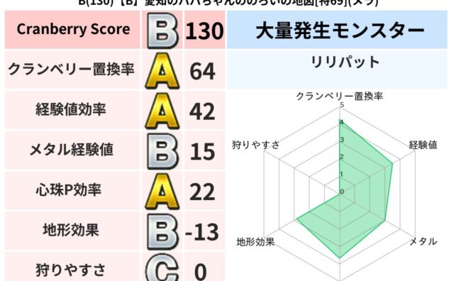 クランベリーボット判定結果の詳細クランベリースコア112クランベリー置換率68%大量発生モンスターわらいぶくろ超耐性メラ(0%)こころ道 完全一致モンスタースカルガルードラゴン(竜道Lv5)デビルアーマー大神官(舞道Lv5)びっくりサタン大...