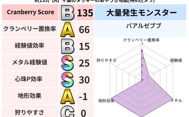 クランベリーボット判定結果の詳細クランベリースコア128クランベリー置換率77%大量発生モンスターモコモコじゅう超耐性メラ(11%)こころ道 完全一致モンスターキースドラゴン大魔道士(理力道Lv5)モコモコじゅうニンジャ(波道Lv10)オー...