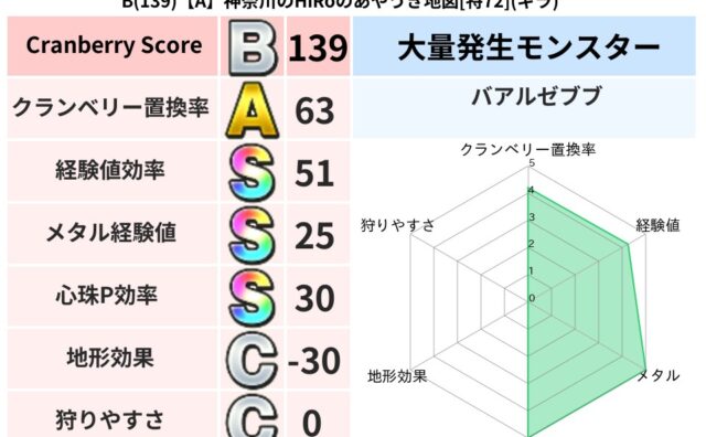 クランベリーボット判定結果の詳細クランベリースコア:141クランベリー置換率:47%大量発生モンスター:スライムつむりギラ超耐性(0%)こころ道 完全一致モンスターしのどれい: ゴッドハンド(守護道Lv5),大魔導士(魔力道Lv5)どくどく...
