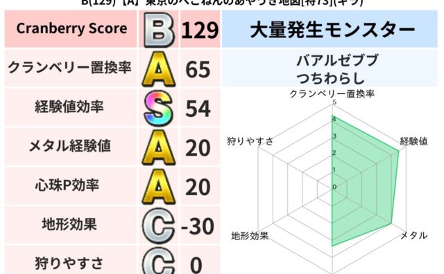 クランベリーボット判定結果の詳細クランベリースコア:93クランベリー置換率:64%大量発生モンスター:げんじゅつしギラ超耐性(42%)系統狩り(41%)こころ道 完全一致モンスターヘルボックル魔剣士(魔道Lv30)キースドラゴン大魔導士(理...