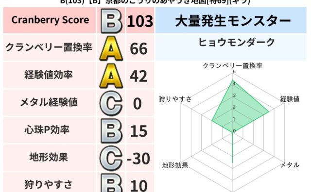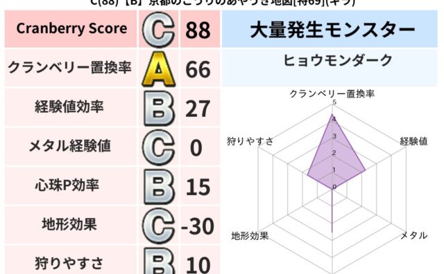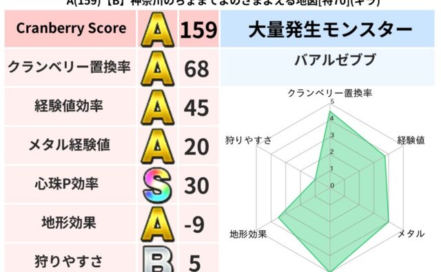 クランベリーボット判定結果の詳細クランベリースコア111クランベリー置換率74%大量発生モンスターりゅうせんし超耐性ギラ(14%)系統狩り虫系44%こころ道 完全一致モンスターがいこつ魔剣士(共通Lv1)かっちゅうアリ魔人(共通Lv1)てつ...