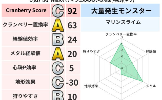 クランベリーボット判定結果の詳細クランベリースコア:92クランベリー置換率:63%大量発生モンスター:マリンスライムギラ超耐性(77%)系統狩り(41%)こころ道 完全一致モンスターくさった死体ゴッドハンド(守護道Lv5),大魔導士(魔力道...