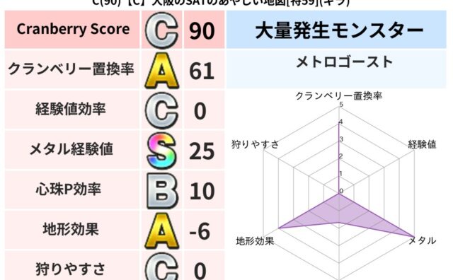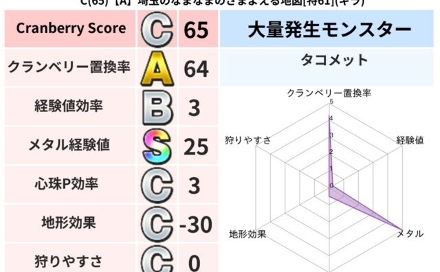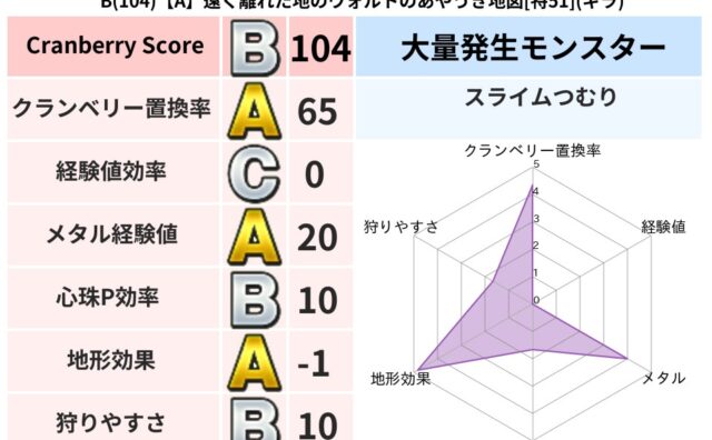 クランベリーボット判定結果の詳細クランベリースコア41クランベリー置換率63%大量発生モンスタータコメット超耐性ギラ(38%)こころ道 完全一致モンスターストーンマンゴッドハンド(守護道Lv5)びっくりサタン大神官(共通Lv1)ブラックチャ...