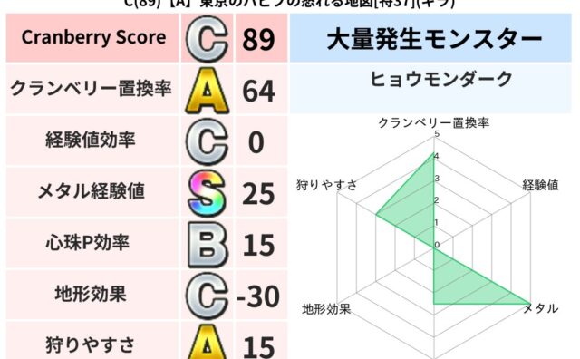 クランベリーボット判定結果の詳細クランベリースコア68クランベリー置換率64%大量発生モンスターメーダロード超耐性ギラ(37%)こころ道 完全一致モンスターストーンマンゴッドハンド(守護道Lv5)だいまどうゴッドハンド(武道Lv40)フロス...
