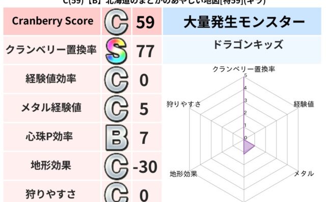 クランベリーボット判定結果の詳細クランベリースコア68クランベリー置換率68%大量発生モンスターバアルゼブブ超耐性ギラ(37%)系統狩り悪魔系41%こころ道 完全一致モンスターどくイモムシニンジャ(波道Lv5)どれいへいしドラゴン(人道Lv...