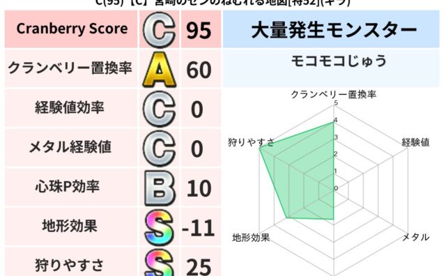 クランベリーボット判定結果の詳細クランベリースコア44クランベリー置換率64%大量発生モンスターメトロゴースト超耐性ギラ(49%)こころ道 完全一致モンスタードロヌーバニンジャ(波道Lv5)かっちゅうアリ魔人(共通Lv1)メトロゴースト大魔...