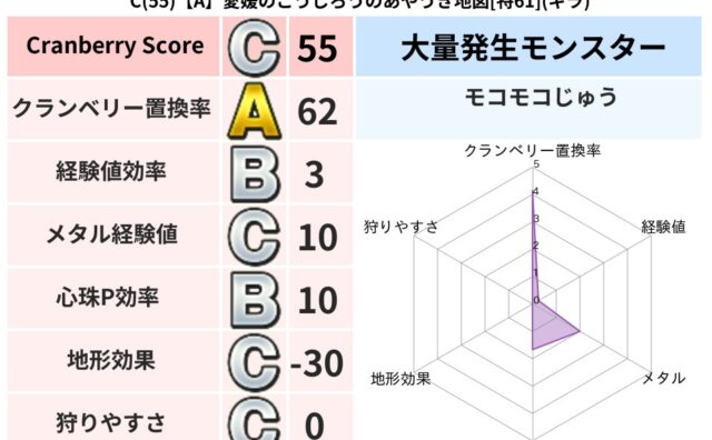 クランベリーボット判定結果の詳細クランベリースコア58クランベリー置換率68%大量発生モンスターつむりんママ超耐性ギラ(90%)こころ道 完全一致モンスターねこまどうニンジャ(風道Lv5)ベロニャーゴ大魔道士(理力道Lv5)シャドーニンジャ...