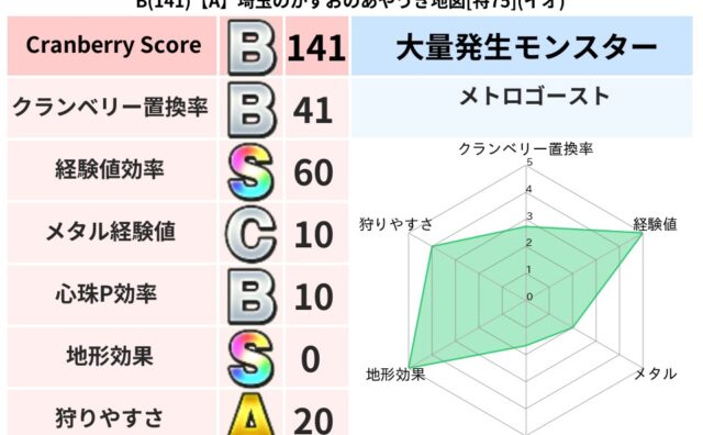 スコアA A(160)【C】広島のくにたかのかわいい地図[特74](イオ) クランベリーボット判定結果の詳細クランベリースコア160クランベリー置換率46%大量発生モンスターじごくのもんばん超耐性イオ(0%)超耐性・弱耐性なしバギこころ道 完全一致モンスターどくろあらいゴッドハンド(守護道Lv5)くさった死体ゴッド... 2025/10/08 18:51 スコアA地図判定結果