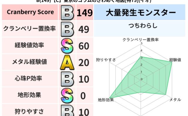 地図判定結果 B(149)【C】東京のコラムのざわめく地図[特75](イオ) クランベリーボット判定結果の詳細クランベリースコア149クランベリー置換率49%大量発生モンスターつちわらし超耐性イオ(0%)こころ道 完全一致モンスタードロヌーバニンジャ(波道Lv5)どくどくゾンビ魔剣士(共通Lv1)まどうしゴッドハンド... 2025/10/12 15:44 地図判定結果