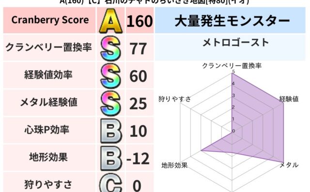 クランベリーボット判定結果の詳細クランベリースコア90クランベリー置換率68%大量発生モンスタードラゴンキッズ超耐性イオ(53%)こころ道 完全一致モンスターさまようよろいゴッドハンド(守護道Lv5)ばくだん岩大神官(舞道Lv5)テンツク大...