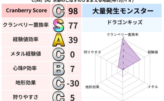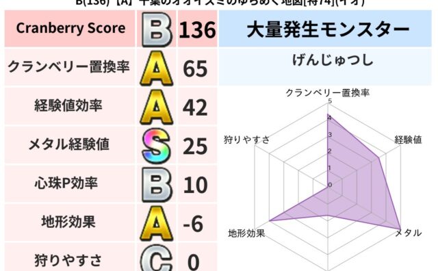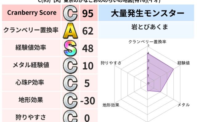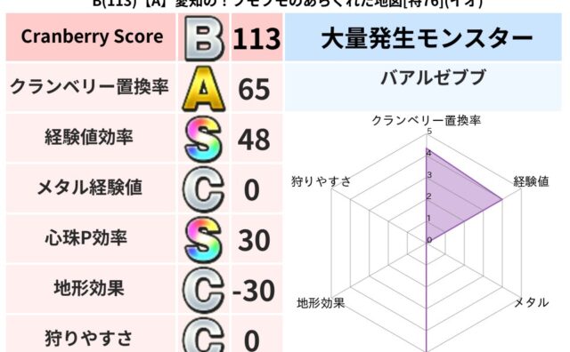 クランベリーボット判定結果の詳細クランベリースコア113クランベリー置換率65%大量発生モンスターバアルゼブブ超耐性イオ(72%)こころ道 完全一致モンスターキャットフライニンジャ(共通Lv1)かっちゅうアリ魔人(共通Lv1)つかいま大魔道...