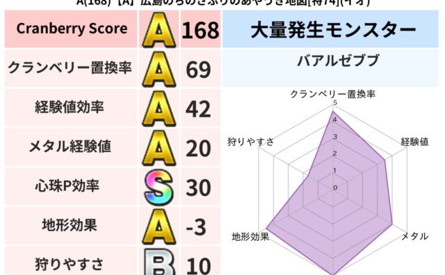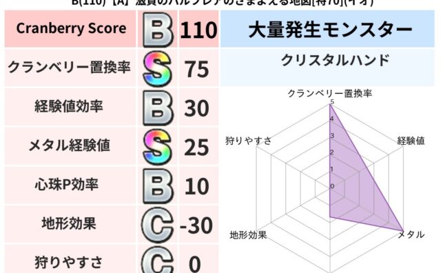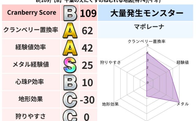 クランベリーボット判定結果の詳細クランベリースコア:142クランベリー置換率:45%大量発生モンスター:つちわらしイオ超耐性(0%)こころ道 完全一致モンスターベロニャーゴ: 大魔導士(理力道Lv5)つかいま: 大魔導士(理力道Lv5)キャ...
