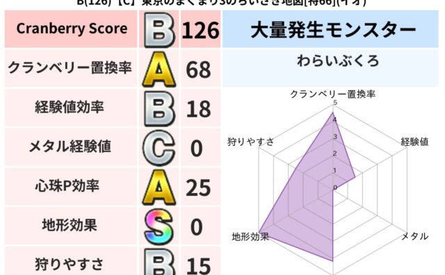 クランベリーボット判定結果の詳細クランベリースコア:123クランベリー置換率:66%大量発生モンスター:マリンスライムイオ超耐性(59%)こころ道 完全一致モンスタードロヌーバニンジャ(波道Lv5)ストーンマンゴッドハンド(守護道Lv5)ミ...