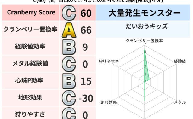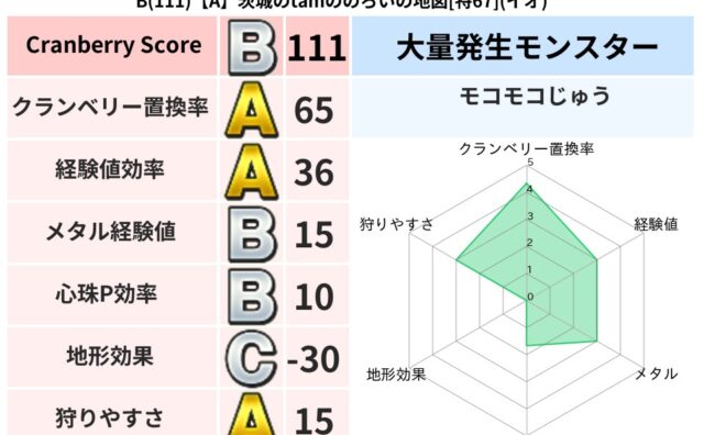 クランベリーボット判定結果の詳細クランベリースコア75クランベリー置換率64%大量発生モンスターメーダロード超耐性イオ(48%)こころ道 完全一致モンスターどれいへいしドラゴン(人道Lv5)リカントマムルドラゴン(竜道Lv5)マジカルハット...